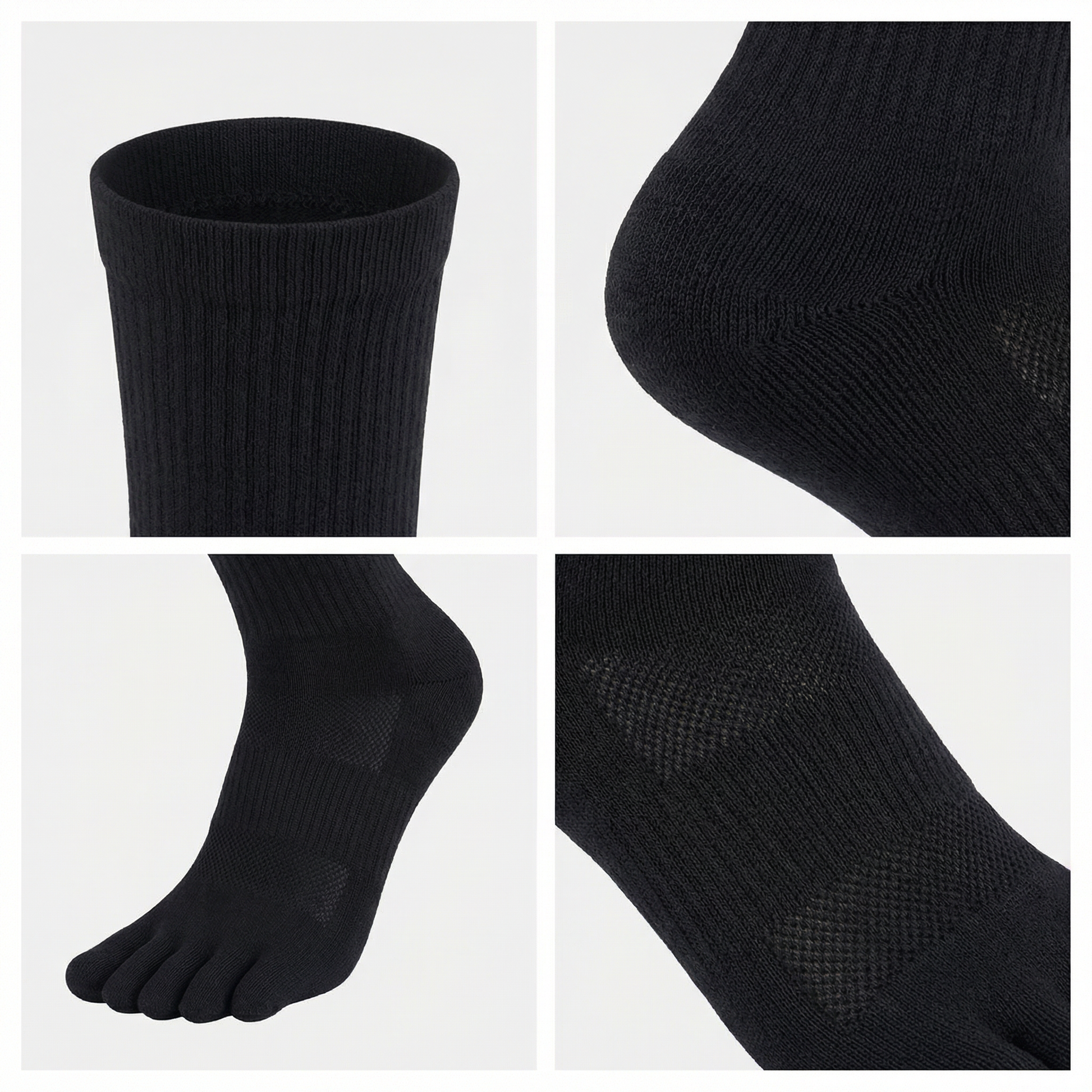 You've been standing on concrete for 10 hours. Your feet are screaming. Tomorrow you do it again. Built for long shifts and long hours on your feet, these mid-calf toe socks are designed to help reduce foot pressure, toe crowding, and sweaty discomfort inside work shoes. Ideal for standing and high-movement jobs, they pair best with clogs, wide work shoes, and wide-toe box sneakers.